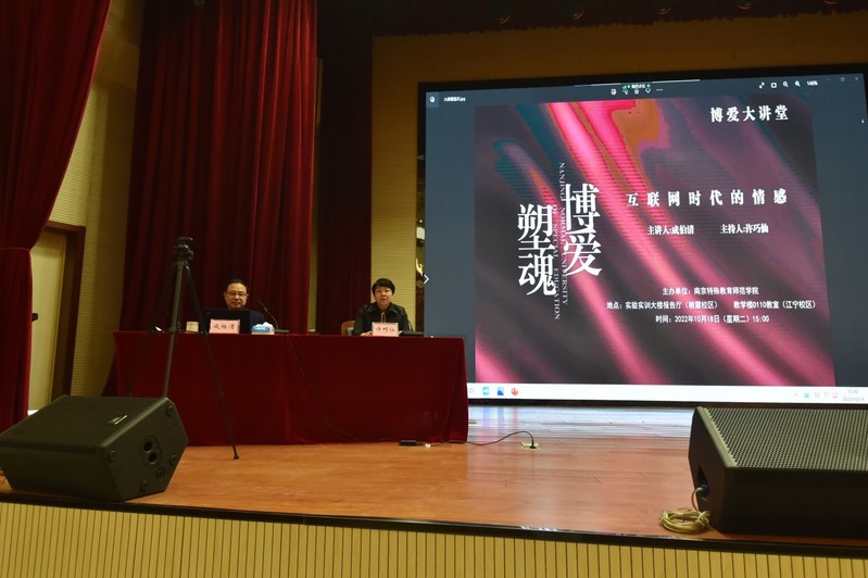 10月18日下午,南京大学社会学院院长、博士生导师成伯清教授应邀做客我校“博爱大讲堂”,做了一场题为《互联网时代的情感》的精彩学术报告。报告由我校党委常委、副校长许巧仙主持,栖霞校区和江宁校区师生按照疫情防控要求,线上、线下参与学术讲座,并进行了面对面的交流。