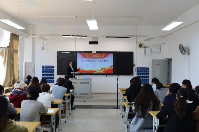 吴月华书记强调,学院全体教职工要牢记习近平总书记“坚持人民至上”的嘱托,以生为本,用心用情呵护学生成长成才;牢记“为党育人、为国育才”使命,全面落实立德树人根本任务。进一步深入学习,第一时间把党的二十大的新观点、新思想和新精神融入到课堂教学和实际工作中,全力以赴迎接本科教学工作合格评估,凝心聚力推进学院高质量发展。