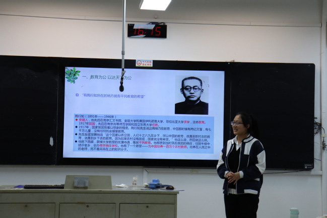 在同学文章分享环节,本次由陶睿等五位同学为大家分享了教育家陶行知的事迹,结合自己的阅读体验与实践经历,畅谈自己的思考,并互相交流阅读体会。