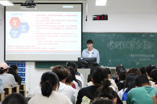 为了进一步提高我院学生的考研热情,明确考研目标,掌握相关考研技巧,了解更多考研信息,教育科学学院于2022年10月15日晚在博雅楼举办考研系列分享会,本次交流会邀请了学院历届考研成绩优异、经验丰富的学长学姐们。