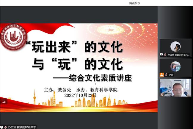 为培养学生的学习兴趣,培养“诗意”的生活方式,教育科学学院于2022年10月22日14点于线上开展“‘玩出来’的文化与‘玩的文化”综合文化素质讲座。本次讲座由江苏第二师范学院文学院冯保善教授主讲,冯保善教授在文学教育与研究领域成果显著。