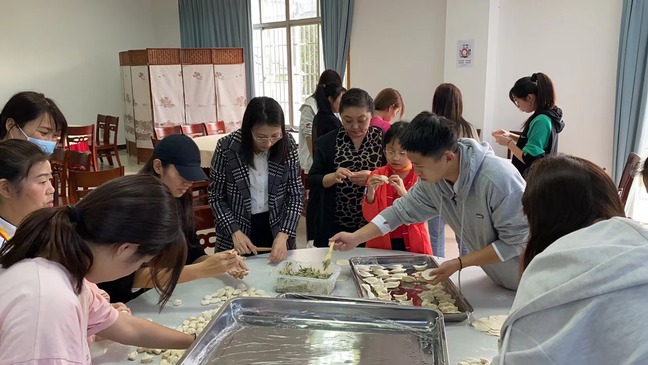 主题红歌汇活动结束后,体育学院直属党支部书记张启昕和值班老师们一起和同学们和面、擀面、包饺子,用心、用情、用爱共同营造家“香”味。学生和老师围在一起包饺子、共享美食,共同感受爱与温馨。
