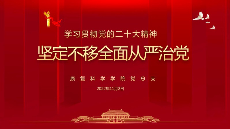 11月2日,康复科学学院党总支召开线上会议,专题学习党的二十大报告中关于全面从严治党的有关内容。学院全体教师参会,学院党总支统战委员、院长王姣艳主持会议。