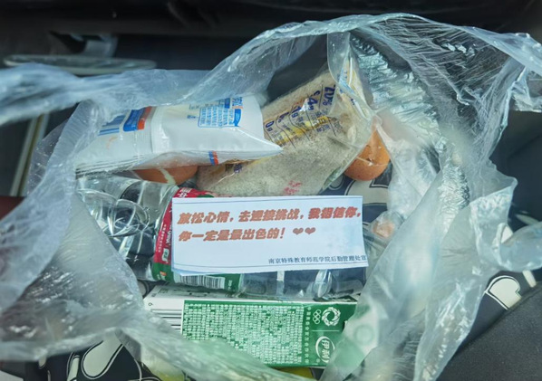 为了报考教资的同学能够顺利参加本次教资考试,学校为同学们开通了核酸检测绿色通道,连夜准备爱心午餐,安排好专车接送博小爱们往返考点。丰富的物资、暖心的小纸条让同学们倍受感动。当教资考试结束后,回到学校的同学看到学校正大门,激动地说:“教资路途波折,我终于回家了!”