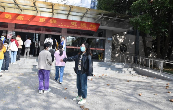 管理学院辅导员陆剑老师坚持每天线上花式督促同学们完成核酸检测,传达有关疫情防控等重要信息;线下统筹协调全院学生有序参加核酸检测。管理学院的党员、班委以及志愿者们也积极投身到疫情防控志愿者活动中,冲锋在前,现场维持秩序。