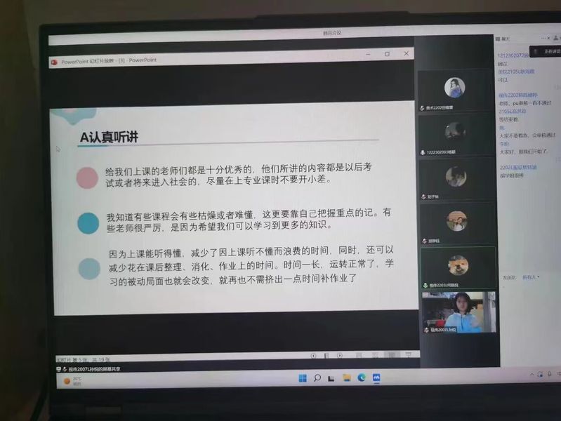 为服务人才培养,凝聚榜样力量,进一步让广大同学明确学习目标,端正学习态度,增强学习动力,勤奋刻苦学习。11月2日下午,美术与设计学院线上举办“自强先锋”博爱大讲堂。本次讲堂邀请了美术与设计学院2019级五位学生代表作为主讲,美术与设计学院2021、2022级部分学生参加,青年志愿者协会手翻小组承担了本次活动的手语翻译工作。