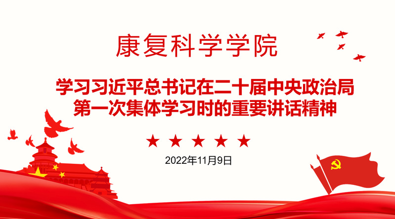 康复科学学院党总支副书记吴冠磊表示,习近平总书记在二十届中央政治局第一次集体学习时的重要讲话,深刻阐释了学习贯彻党的二十大精神需要把握的重大原则和重要方法。在今后的学生工作中,要以学习宣传党的二十大精神为强大动力,发挥思想政治工作传家宝和生命线的作用,教育引导大学生践行社会主义核心价值观,着力培养担当民族复兴大任的时代新人。