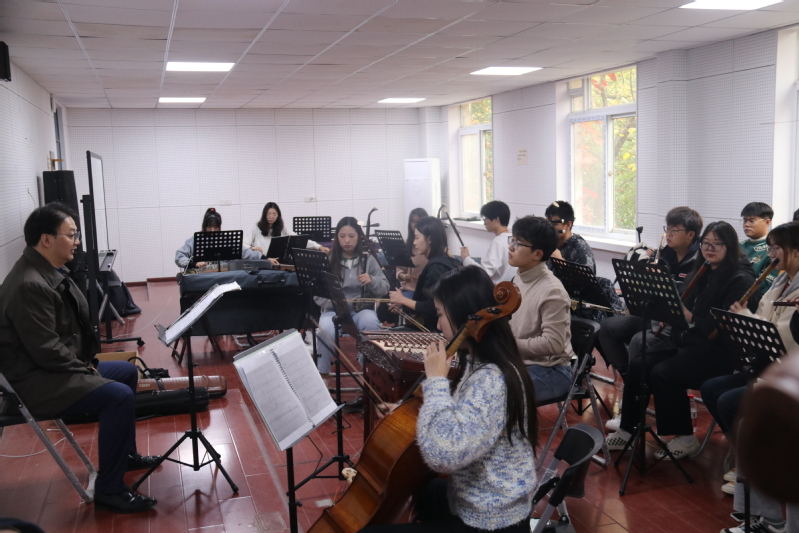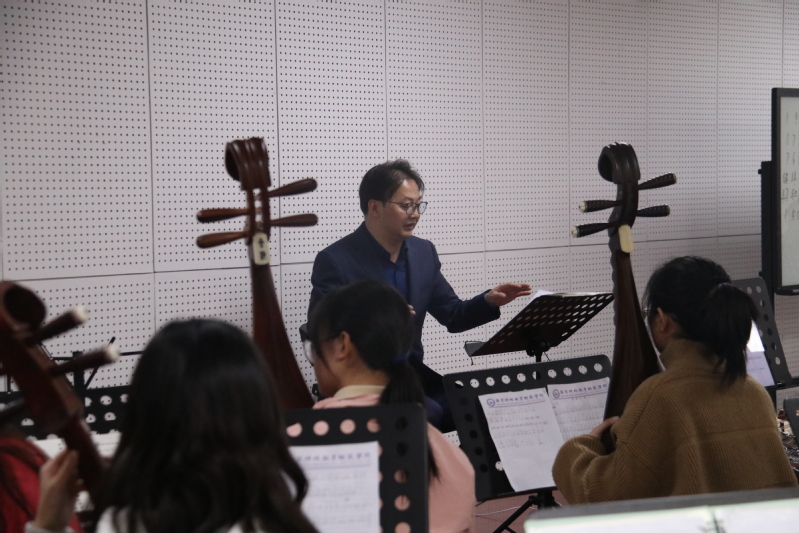 11月13日下午,为推进音乐与舞蹈学院民乐团参加校庆演出节目排练工作,音乐与舞蹈学院邀请到著名二胡演奏家、民乐指挥、南京师范大学音乐学院教授、国家一级演奏员、硕士生导师召唤教授,对民乐团排练进行现场指导。