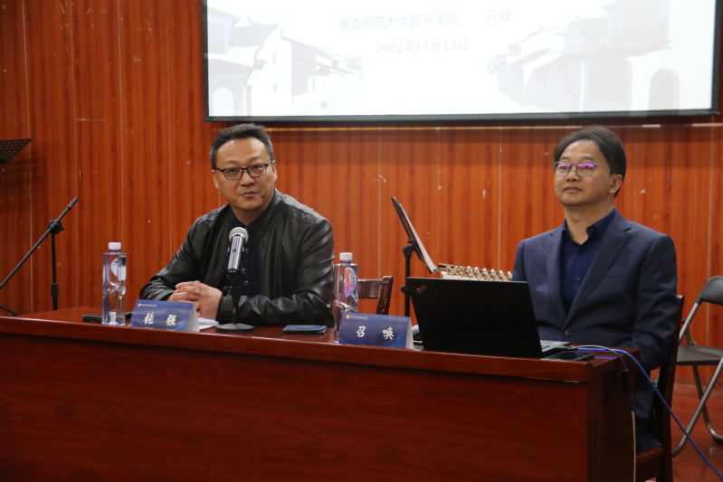 11月13日下午,音乐与舞蹈学院邀请著名二胡演奏家、民乐指挥、南京师范大学音乐学院教授、国家一级演奏员、硕士生导师召唤教授,来到学院音乐厅举办《秀美江南 琴韵流芳——江南风格二胡作品的赏析与演奏》讲座。音乐与舞蹈学院院长张强主持此次讲座。