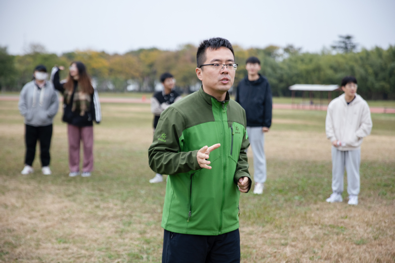 游戏活动环节分为“我拍的最美”“垒球小能手”“爱的抱抱”以及“拔腰旗”四个部分。通过各个场所的打卡游戏,师生们了解了浦口校区美丽的环境。在“垒球小能手”环节,小组成员集思广益,通力合作,为了让垒的球更高,他们或用网兜,或用鞋子,或用衣服来固定球体,其中一组把球塞进羽绒服立在地上,引来在场观众的阵阵赞叹。
