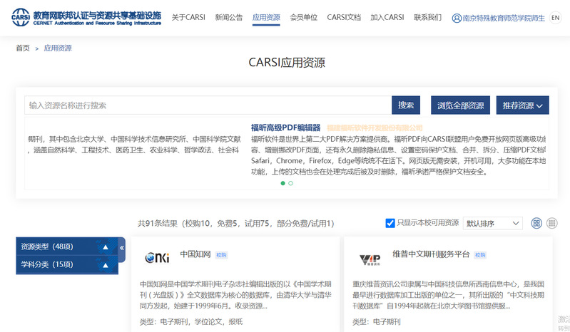 为方便学校师生校外访问图书电子资源,全力支持学校教学科研工作,信息化建设与管理中心联合图书馆深入践行“我为群众办实事”,积极申请、协调相关资源,成功加入中国教育科研和计算机网联邦认证与资源共享基础设施(CERNET Authentication and Resource Sharing Infrastructure,简称CARSI)。