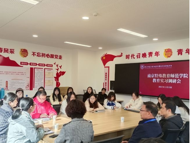 2022年11月16日,语言学院副院长徐琴芳、党总支副书记张冬冬、实习带队教师赵惠岩教授一行专程前往南京师范大学附属中学燕子矶新城学校初中部看望2019级实习学生。实习学校张文艺校长、徐宁副校长以及全体实习生参加了教育实习调研会。