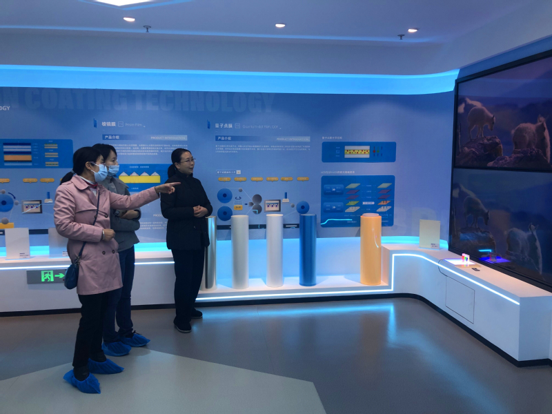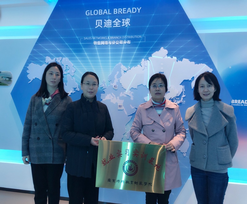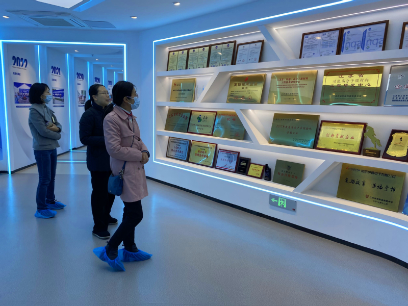 南京贝迪新材料科技股份有限公司人事总监、公司党支部书记王芬,薪酬副科长杨开乔,招聘副科长徐敏热情接待了校方一行,并在企业展厅逐一介绍了公司发展历程、核心业务、全球基地、客户对象、专利技术、社会责任等概况。