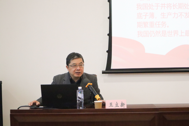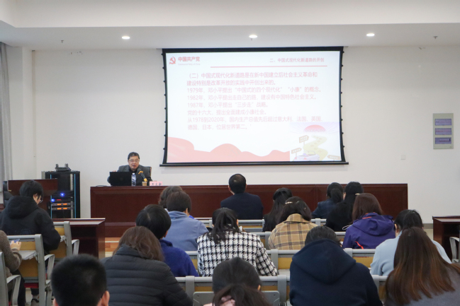 11月16日下午,校党委副书记、校长王立新为教育科学学院全体教师讲授专题党课,党课主题是“以中国式现代化全面推进中华民族伟大复兴”。教育科学学院党总支书记吴月华主持。