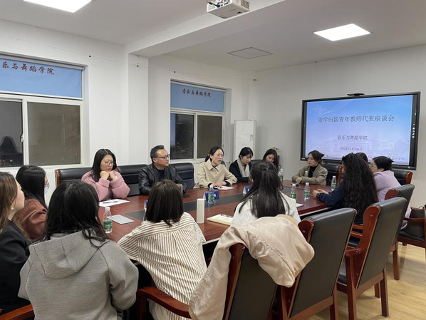 11月16日,音乐与舞蹈学院召开留学归国青年教师座谈会。院长张强、党总支书记蒋科星和副院长连赟出席会议,学院留学归国青年教师参会,座谈会由党总支书记蒋科星主持。
