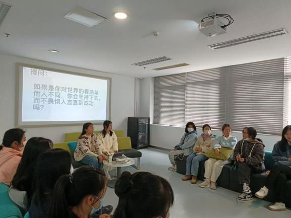 主持人以梵高的事例为引,邀请两位同学讲述她们眼中的“天才”与“疯子”,两位同学结合实际分享了自己身边的事例,让同学们能更清晰地认识“天才”与“疯子”的区别,鼓励大家以积极的心态面对心中的困惑与焦虑。