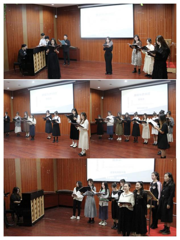 第一篇章——多人重唱:《月亮代表我的心》《彩云追月》《洪湖水浪打浪》《映山红》《over the rainbow》《fly to the moon》《some enchanted evening》,一首首充满回忆的旋律赢得了在场师生的阵阵掌声。