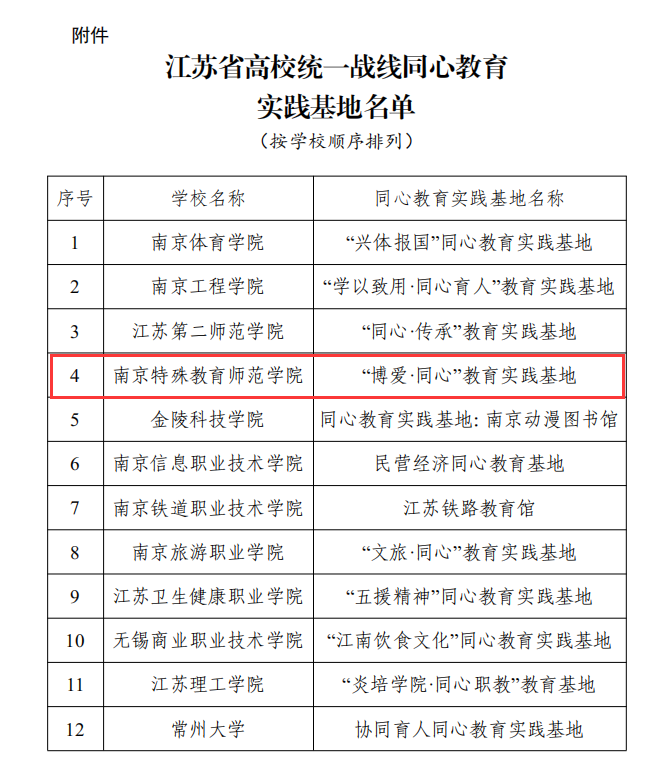 近日,江苏省委教育工委公布2022年江苏省高校统一战线同心教育实践基地名单,我校“博爱·同心”教育实践基地成功入选。