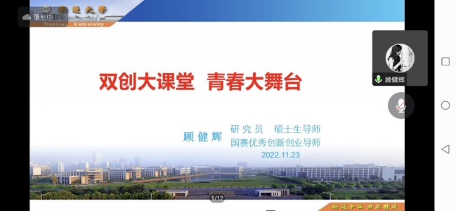11月24日晚,江苏省科技创业导师顾健辉教授应邀为我校学生做了一场题为《双创大课堂 青春大舞台》的线上专题讲座。体育学院直属党支部书记张启昕、团总支副书记屈文文及体院星火公益团队的同学们聆听了讲座,活动还吸引了各二级学院百余名学生参与。