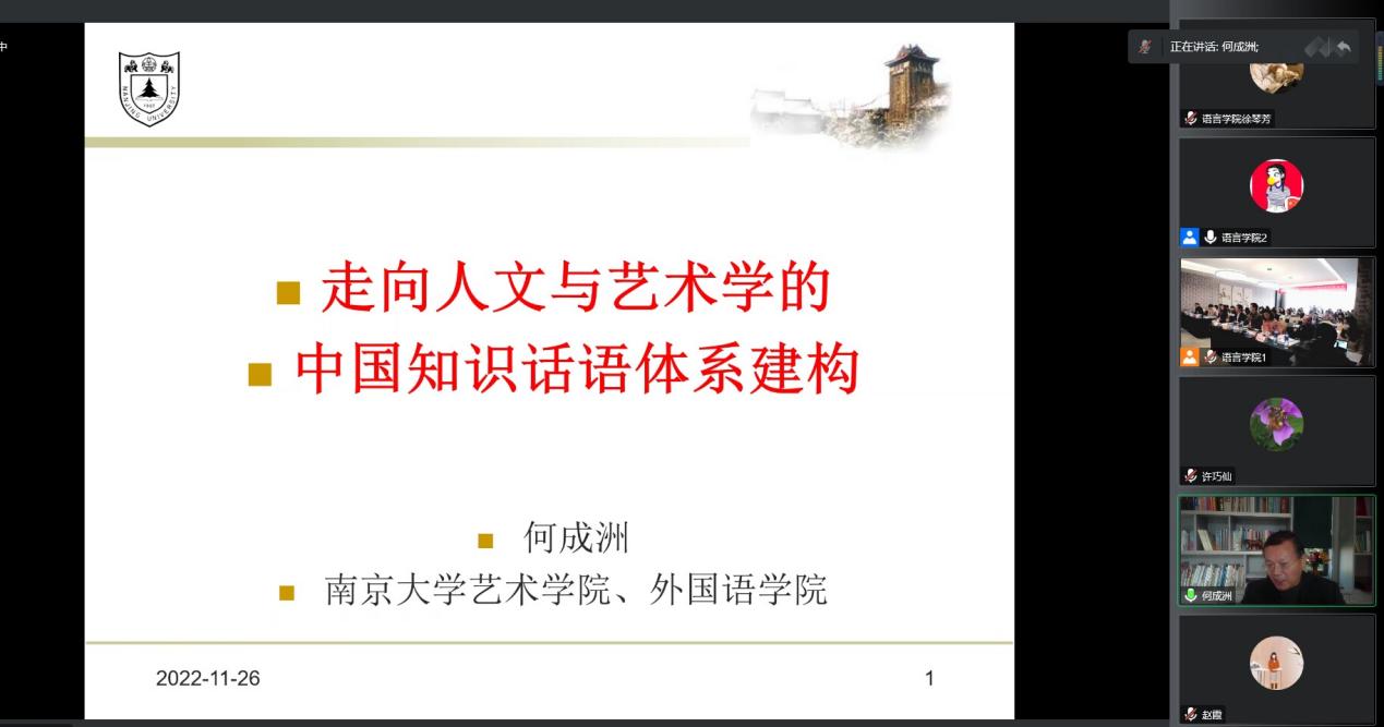 第三组专家围绕“符号学:跨学科研究的方法论”“艺术的文学传播研究”等专题展开报告,由语言学院中文系赵惠岩教授主持。