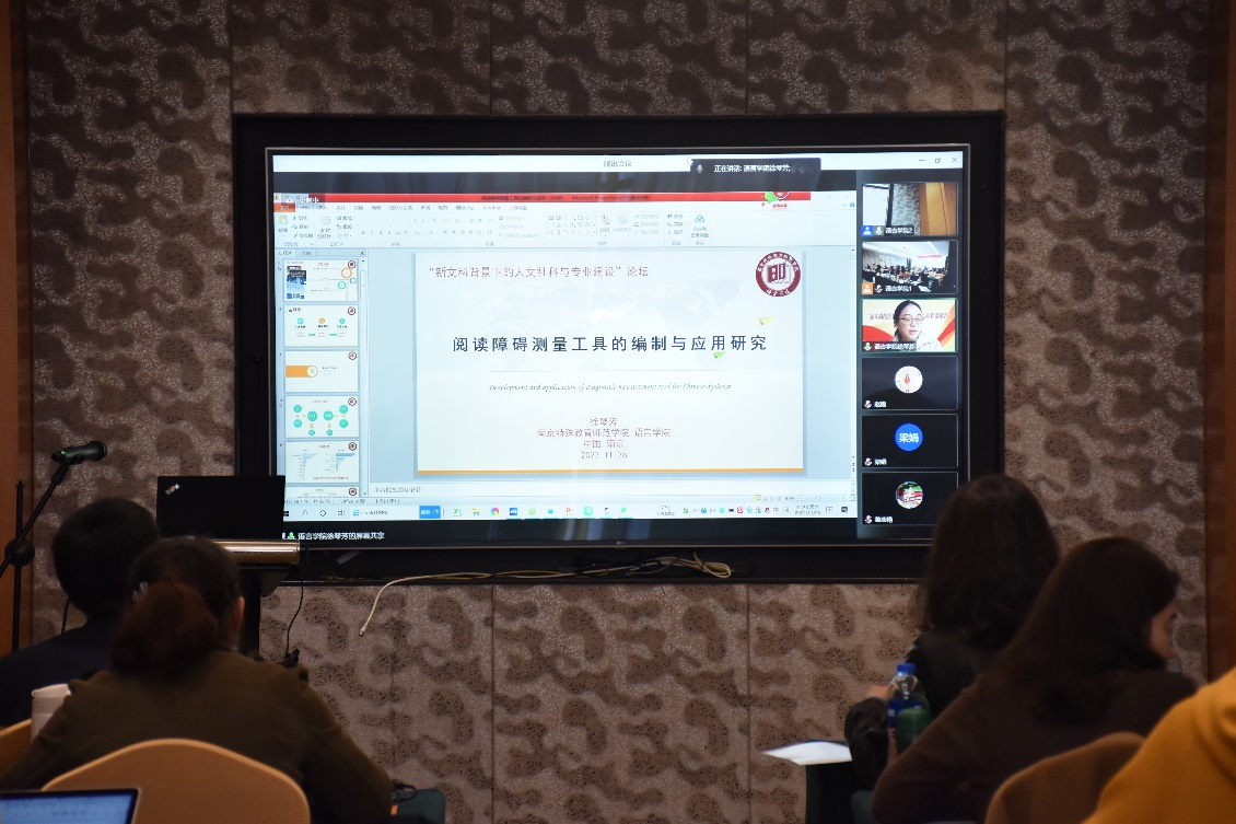 第二组专家以“高校人文社科研究的困境及融合转向”“阅读障碍测量工具的编制与应用研究”等主题进行探讨,由邵珊副教授主持。