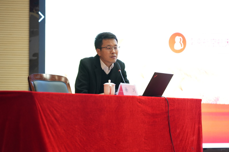 徐川教授以《同上一堂课,启航新征程》为题,以自信自强、守正创新、踔厉奋发、勇毅前行、团结奋斗作为关键词,指出党的二十大是一堂公开课,也是一堂动员课,更是一堂思政课,并分别从“有传承、有主题、有主线、有任务、有重点、有情怀、有号召”七个方面全面系统、生动形象地宣讲党的二十大精神。