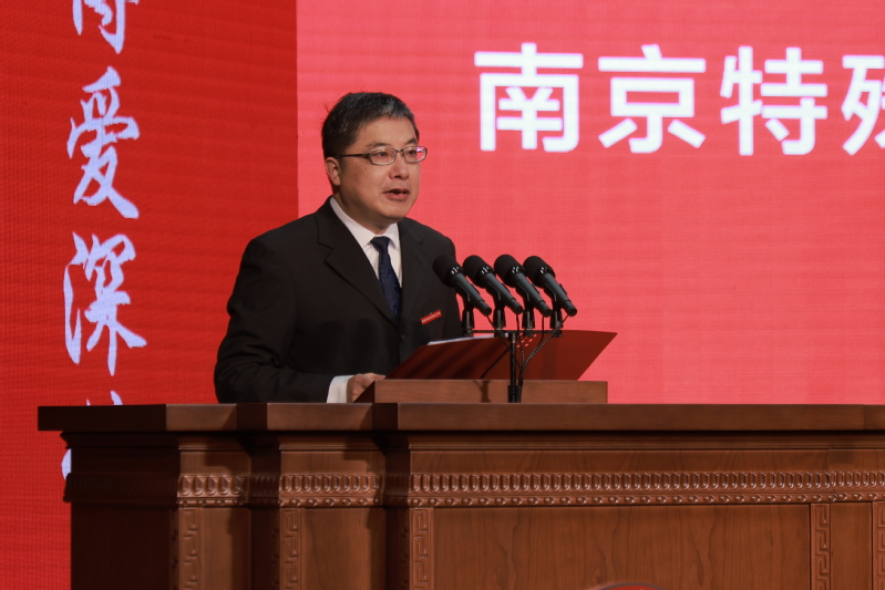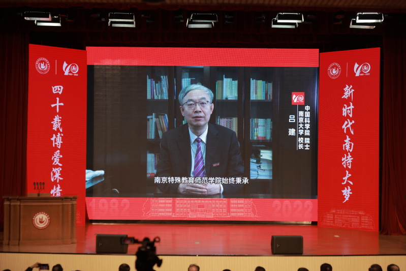 中国科学院院士、南京大学校长吕建作为兄弟高校代表致辞。他指出,作为全国唯一一所以培养特教师资为主的本科高校,南京特殊教育师范学院瞄准特殊教育前沿,奋力践行办好中国特色特殊教育的使命担当,创造了特教人才培养领域的多个第一和唯一,为我国特殊教育和残疾人事业发展作出了突出贡献。同为南京地区的高教伙伴,期待两校能进一步强化资源对接与机制创新,在高等融合教育、社会公益服务等方面深化交流合作,携手办好人民满意的教育,共同讲好中国教育故事,为服务建设强富美高新江苏,加快建设教育强国,作出新的更大贡献。