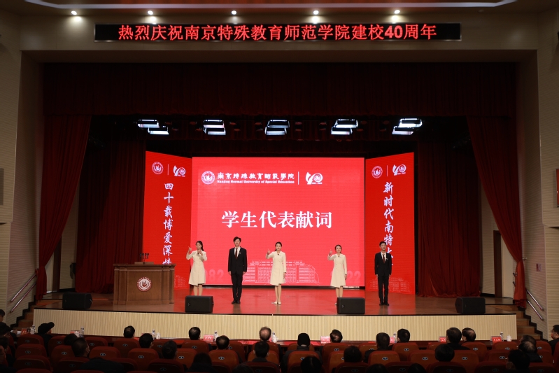 12月12日,南京特殊教育师范学院建校40周年发展大会在栖霞校区实验实训大楼报告厅举行。