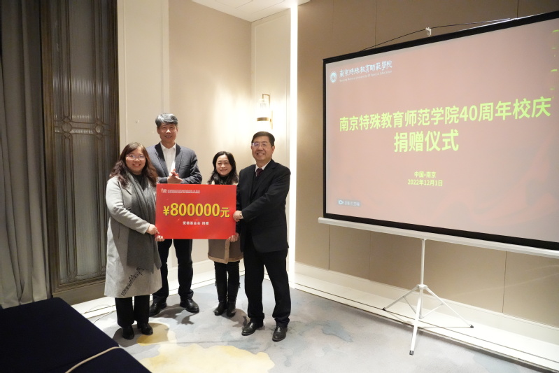 日前,我校举行建校40周年企业捐赠仪式。我校党委书记黄军伟,党委常委、副校长华兴夏,党委常委、党委宣传部部长朱正东,爱德基金会秘书长凌春香、副秘书长佘红玉,江苏美居酒店管理有限公司董事长朱式广,江苏美丽星空儿童康教有限公司总经理韩佳荫,江苏悦心养老产业有限公司董事长高庆玲、顾问刘金荣,铁人体育市场部经理程亚芬,中科乐听智能科技(济南)有限公司教育部部长陈进出席活动。捐赠仪式由华兴夏副校长主持。发展规划处主要负责人参加活动。