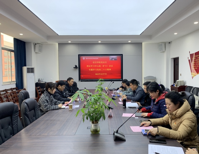12月8日,语言学院召开党总支理论学习中心组(扩大)学习会,专题学习党的二十大报告中关于“青年”的部分,校巡学旁听组成员全程指导本次理论学习,学院党总支理论学习中心组成员及全体行政人员参加本次会议,党总支书记丁祖保主持会议。