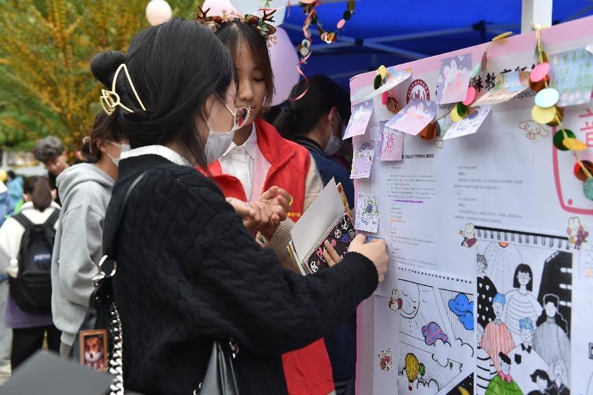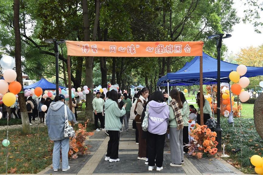 为促进我校学生关注心理健康,宣传心理健康知识,近日,以“向阳携行 共创未来”为主题的“12·5要爱我”心理健康教育周“博爱·同心缘”心理游园会活动在我校栖霞校区残障名人文化园举行。校党委书记黄军伟和党委副书记谭忠出席活动现场。全校近四千名学生参加了本次活动。