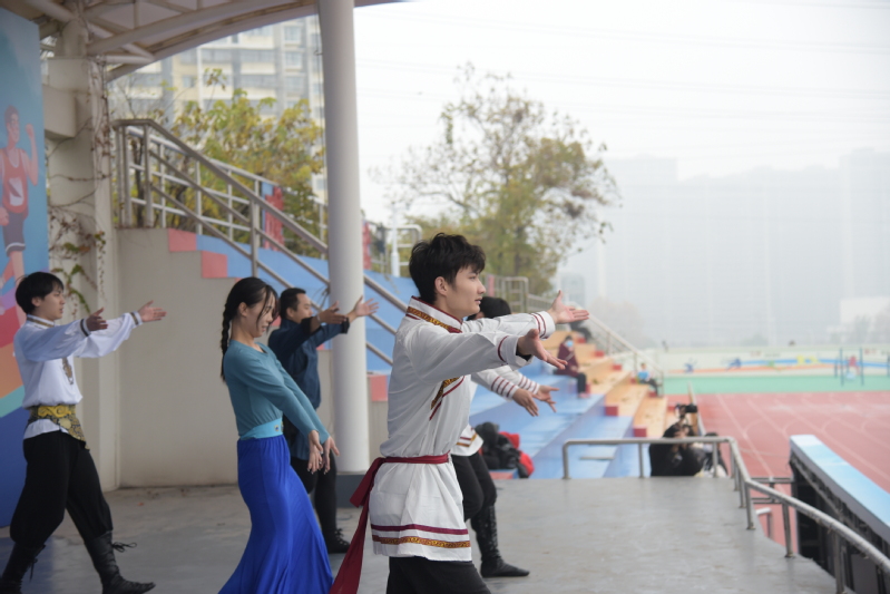 在开幕式前,热闹的音乐街舞、啦啦操等学生社团的暖场表演率先带动起了全场的气氛。在体育学院教师张浩天的带领下,所有参赛运动员进行赛前热身。运动员们跟着音乐节奏在操场上跳跃活动,相互加油鼓劲,为接下来的比赛做好充分准备。