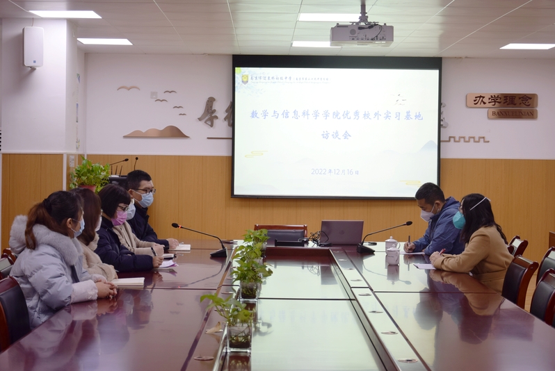 以实习为抓手,以能力为核心,以成长为目标,为期三个月的教育实习工作已经结束,期间克服了疫情带来的巨大困难。为深入了解实习工作成效,加强实习基地建设,提升人才培养质量,推进学校高质量发展,2022年12月16日上午,数学与信息科学学院副院长张居晓教授,教育技术系主任刘艳菊教授走访优秀校外教育实习基地——南京迈皋桥初级中学第二十九中学分校,并与学校校长梁晓燕老师、书记张晓新老师、副校长蔡巍和陈婷老师座谈交流。