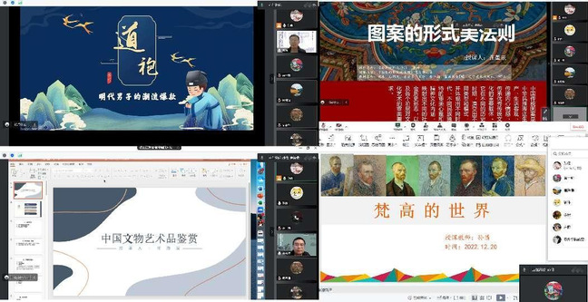 参赛青年教师们课前认真准备、精心设计、多次磨课,先后展示了《道袍——明代男子的潮流爆款》《中国文物艺术品鉴赏》《图案的形式美法则》《梵高的世界》等教学内容。每人20分钟的课堂展示中,四位参赛青年教师均能生动演绎课堂,有效提升学生的学习兴趣以及学习效率,呈现出较好的教学效果。