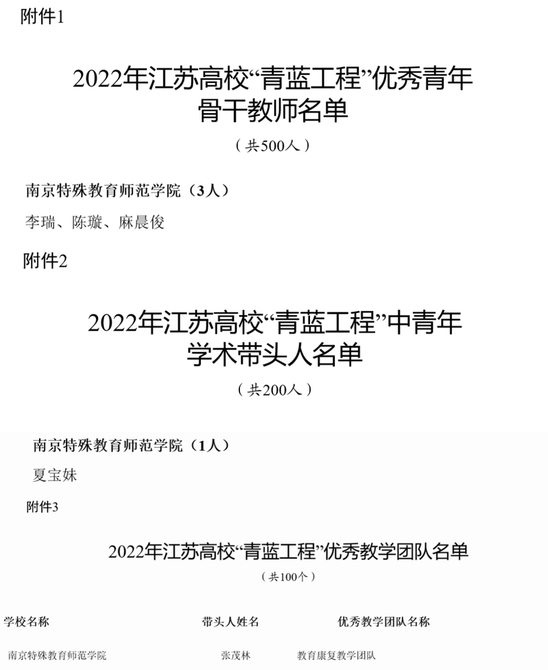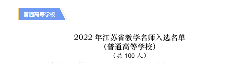 七、学校1名教师荣获第17届“江苏青年五四奖章”;1名教师入选江苏省教学名师;1名教师入选江苏省“333高层次人才培养工程”第二层次培养对象;1个教学团队和4名教师入选江苏省“青蓝工程”培养对象;3人获批江苏省本科类产业教授;7位博士获江苏省“双创博士”项目资助。
