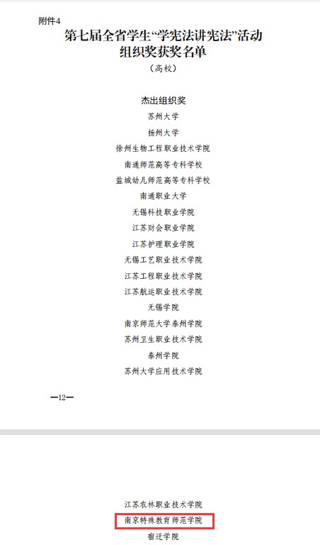 近日,省教育厅公布第七届全省学生“学宪法 讲宪法”活动结果,根据“学宪法 讲宪法”活动开展情况,结合省级决赛和“宪法卫士”2022年行动计划参与情况,授予全省35个单位(7个教育局、14所本科、14所高职高专院校)“杰出组织奖”,39个单位“优秀组织奖”。我校开展情况成绩突出,被授予“杰出组织奖”。