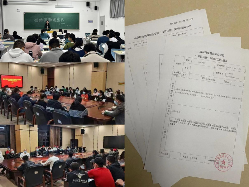 完成2022年“书记信箱”“校长信箱”“12345”等关于后勤管理处的问题处理工作135项,及时回复教代会提案2项。召开学生座谈会以及食堂工作人员座谈会各一次,组织开展了“我给后勤提意见”主题班会活动,召开全校“食品安全与食堂工作”专题会议。召开校园物业服务季度考评工作会议4次。