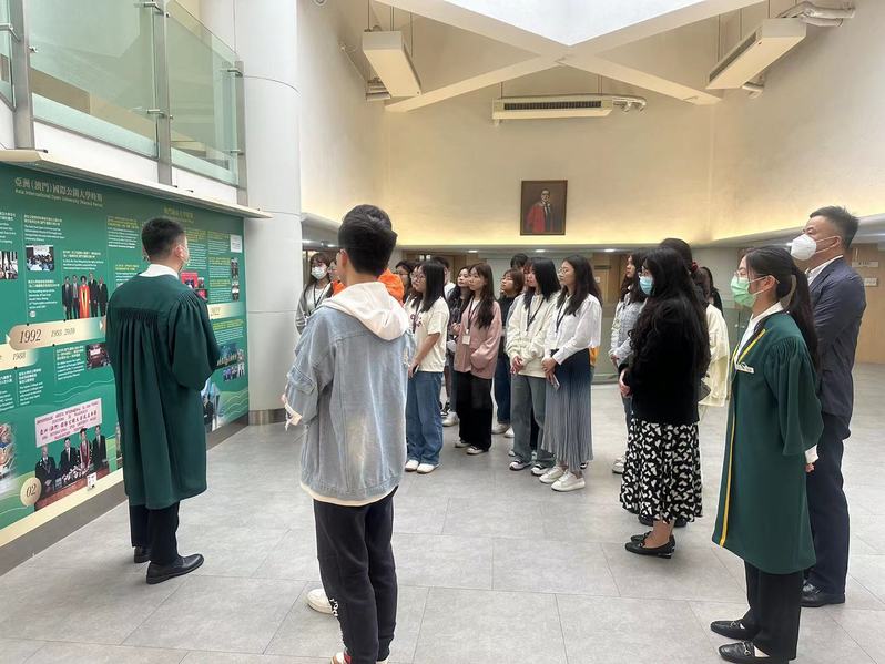 在澳门城市大学,校园讲解员为同学们详细介绍了澳门城市大学的发展历史、校园环境设施、学习管理、社团活动等。小组讨论室、澳门世界记忆学术中心等区域的独特设置让同学们眼前一亮。