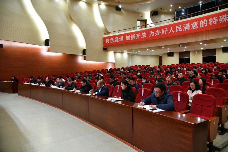 党委副书记、校长王立新从六个方面全面总结了2022年度工作和寒假工作,并就2023年开展的学习贯彻党的二十大精神、确保顺利通过教育部普通高等学校本科教学工作合格评估、落实学校第二次党代会精神、全面推动改革创新、狠抓基层党组织建设、深入开展全面从严治党工作、加强人才队伍建设、加强专业内涵建设、着力推进科研体制机制改革、加强学风建设、加强预算绩效管理、持续推动校区建设等12项重点工作作出部署。他强调,各二级单位要提前谋划,及早部署,提高工作质效;要加强协作,形成合力,认真履职尽责;要激发活力,营造氛围,发挥全员“螺丝钉”作用,真抓实干,推动学校事业高质量发展。