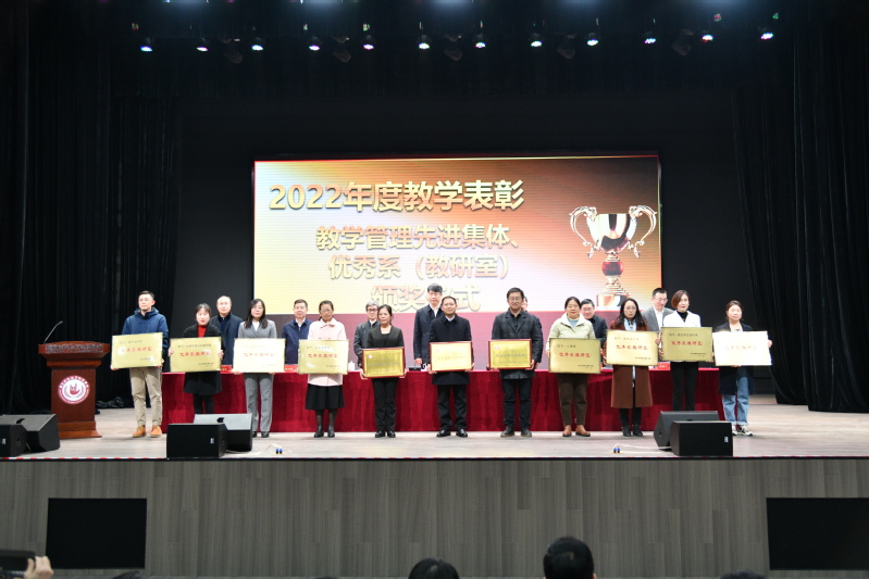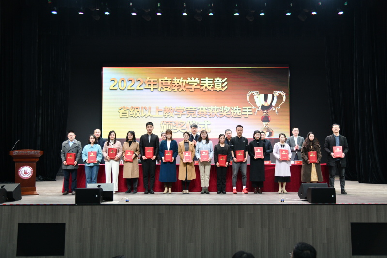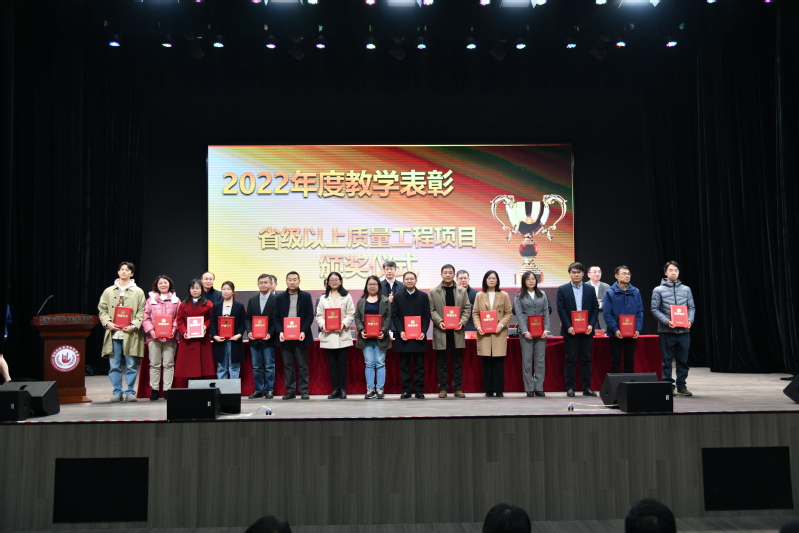 会议举行了颁奖仪式,对2022年度省级以上教学质量工程项目获奖单位及个人、2022年度省级以上教学竞赛获奖教师、2022年度教学管理先进集体和先进个人教学标兵、优秀系(教研室)分别进行了表彰。