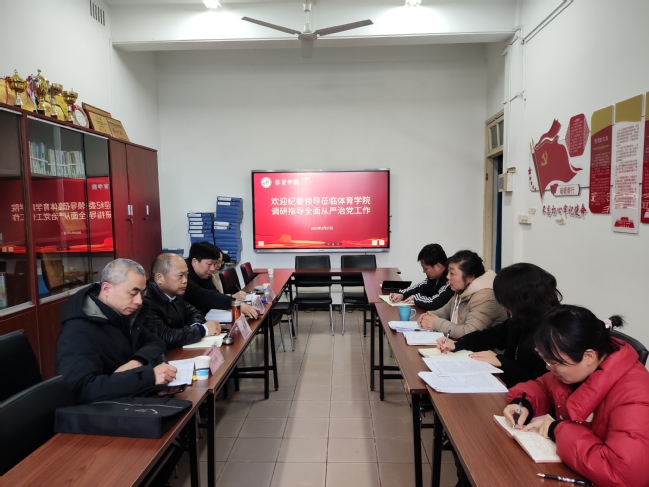 2月27日下午,校党委常委、纪委书记、省监委派驻监察专员于林惠一行到体育学院调研指导全面从严治党工作。
