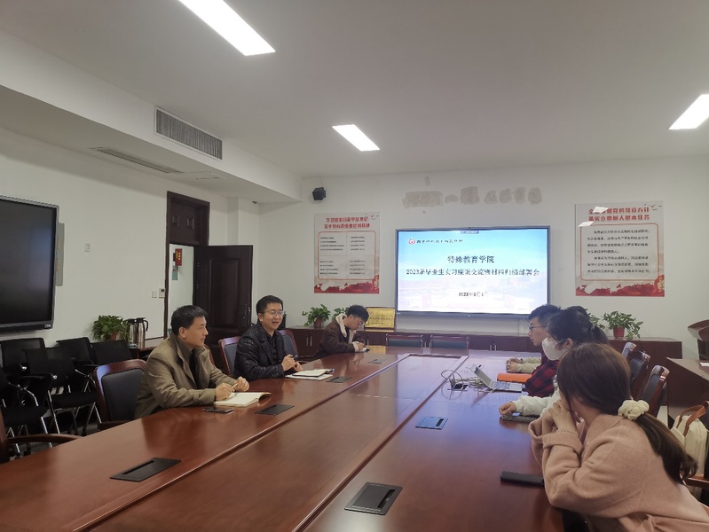 因疫情影响,2022年底学生提前放假离校,2023届毕业生实习收尾工作顺延至本学期期初。为全面推动学院实习工作改革创新,总结本轮实习工作经验以及部署完成好实习收尾工作,特殊教育学院于3月1日下午在博雅楼2401会议室召开2019级实习座谈交流暨材料归档部署会。会议由副院长张伟锋主持,院长李拉、兼任教务老师刘凯毅、2019级实习生代表和学生骨干参加会议。