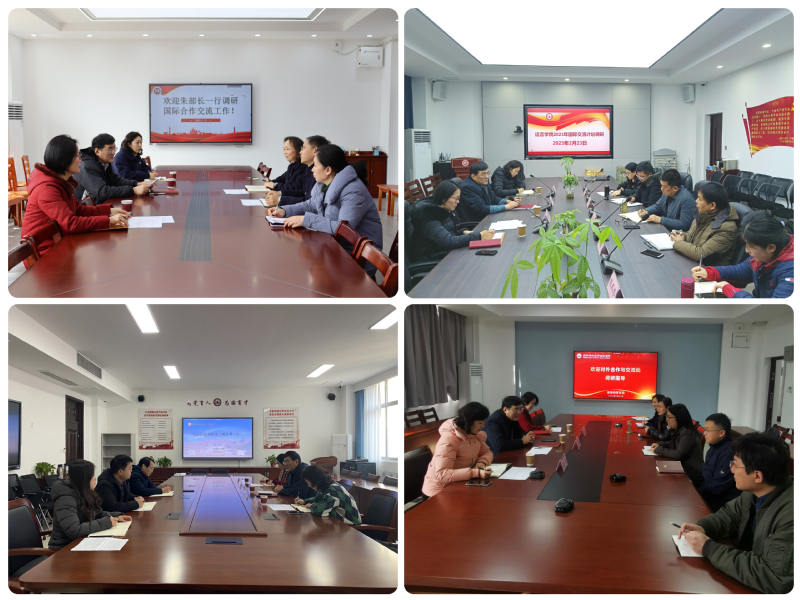 各学院领导班子围绕学科专业的国际化建设、国际会议的举办、中外合作办学、教师境外交流、学生境外访学、来华留学生培养、国际平台搭建、深化国际科研等方面进行了深入交流与探讨。
