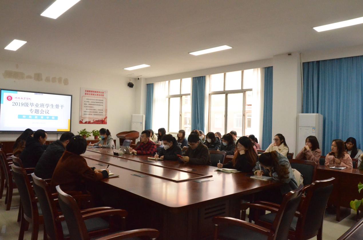 为进一步发挥2019级毕业班学生干部、学生党员的桥梁纽带和先锋模范作用,特殊教育学院于3月1日下午在博雅楼2401会议室,召开全体毕业班团学骨干会议。党总支书记叶亮、副书记李鹏出席会议,学工办主任元志立、毕业班辅导员方荣以及毕业班主要团学骨干和党员学生参加会议。