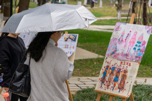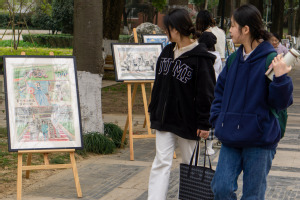 本期为“我的大学生活”系列第一期“南特印象”,面向全院师生征集校园绘画作品,共收到两百多幅不同主题作品。经过专业评选,共计八十多幅优秀作品脱颖而出。此次展出作品展示了师生记录校园自然景色、校园生活、校园学习等点滴发现。此次作品展,美术与设计学院根据师生在文创、创新创业等方向的研究,自主设计作品的呈现方式,培养创新意识与创新能力。