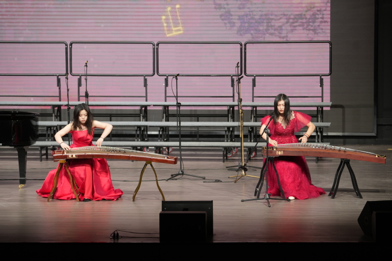 音乐会上,合唱团的师生们为观众带来了一场听觉盛宴。一首《看山看水看中国》拉开帷幕,演唱者们运用专业的演唱技巧表达出热爱祖国的深情。板胡演奏更是将华夏五千年古老璀璨的历史演绎的更加出彩。