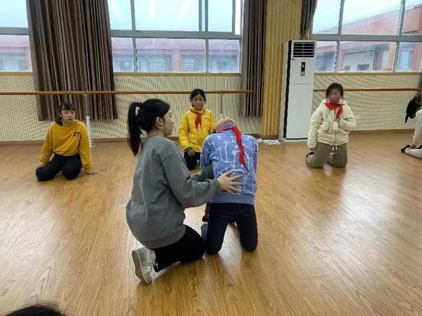 教师以党的二十大精神为背景,将红色精神以叙事的形式讲述,以舞蹈的形式传达,烘托课堂气氛。小朋友们在老师的言语引导下,想象自己是一名光荣的共产党员,从而达到相应的舞蹈效果。课后,同学们还说道:“在做这个造型的时候,我的内心感到无比的自豪。”