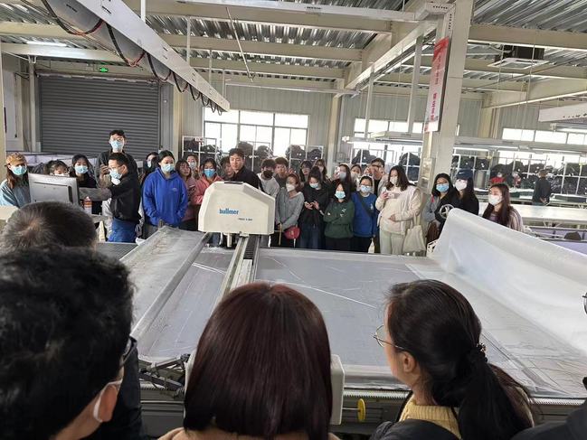 工作人员带领同学们了解了该公司的发展历程,参观了服装生产的整个流程。公司专注于服装、家用纺织品和家居用品领域,拥有包括公司总部、7家全资实业、2家海外公司及3家控股投资公司在内的十多家成员企业。
