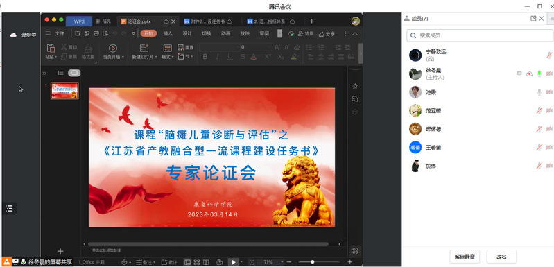 徐冬晨副教授汇报了课程“脑瘫儿童诊断与评估”之《江苏省产教融合型一流课程建设任务书》的编写背景、目的、意义和内容。与会专家对任务书内容进行研讨交流,提出了详实的具有建设性、指导性的意见和建议,最终形成专家论证意见。