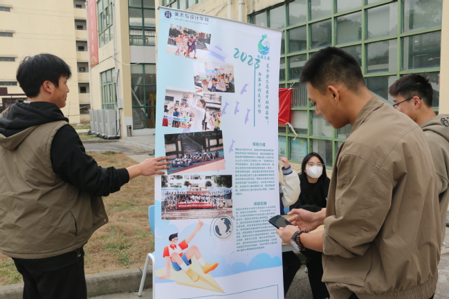活动开始之前,团队线上线下两手抓,线下定做宣传材料的同时,线上开展多次宣传活动的周密研讨,每位负责人都充分准备。活动现场同学们踊跃参与报名,志愿者们积极为同学排疑解答,让大家对雨露乡村美育计划有了更深入的了解。